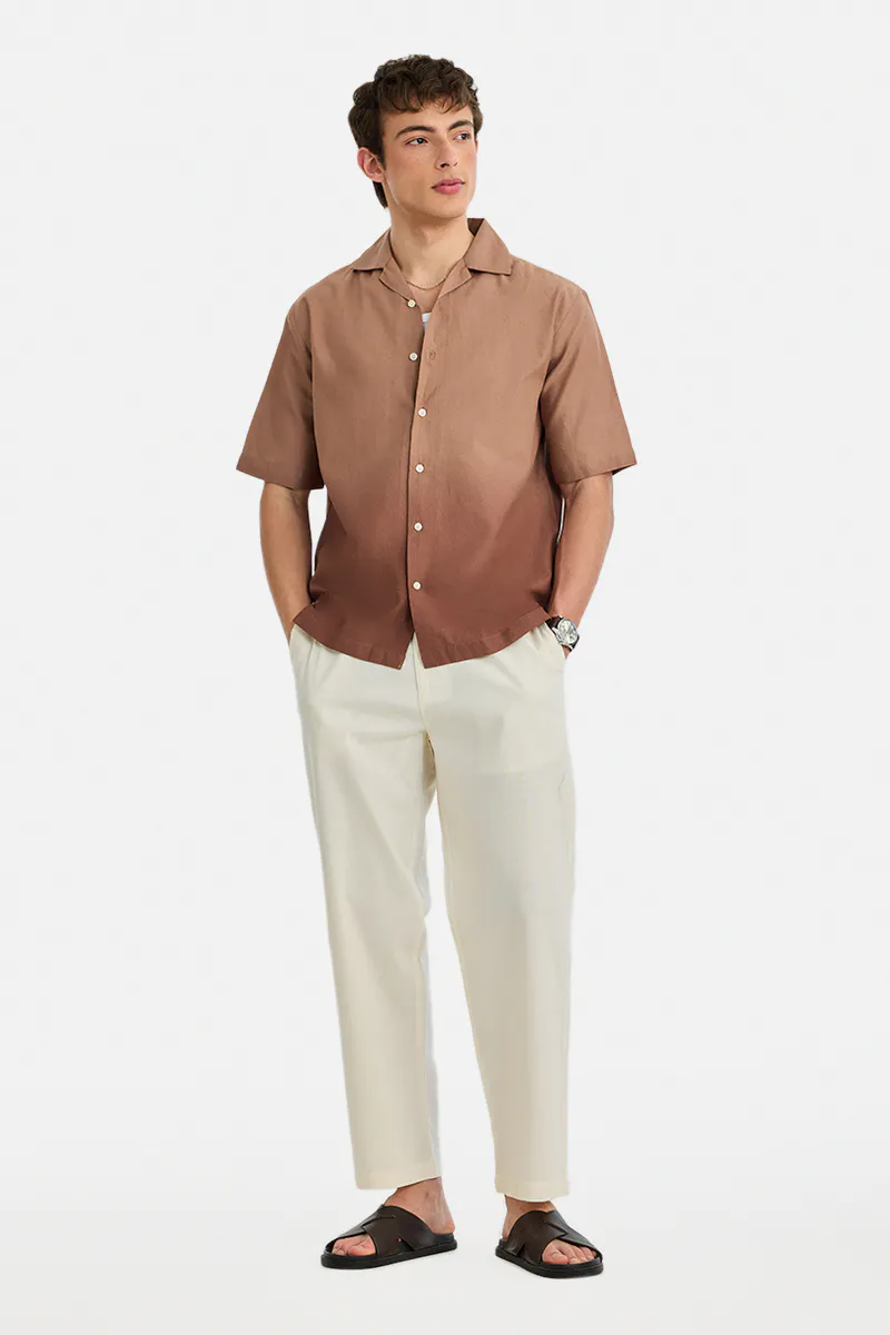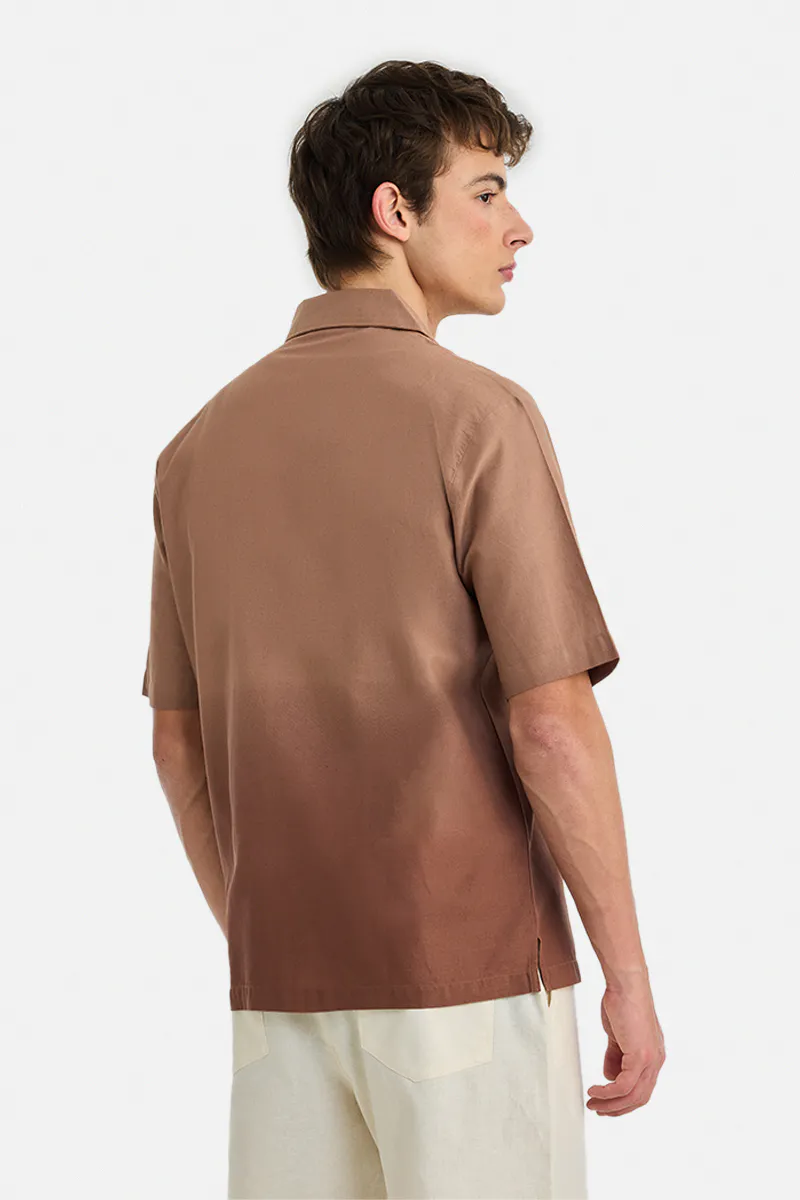 Rust-toned shirt with a Cuban collar and short sleeves, crafted from a premium blend of 93% cotton and 7% linen. Its lightweight, breathable fabric ensures all-day comfort, while the ombre effect adds a modern touch. Perfect for casual outings or relaxed holiday vibes.